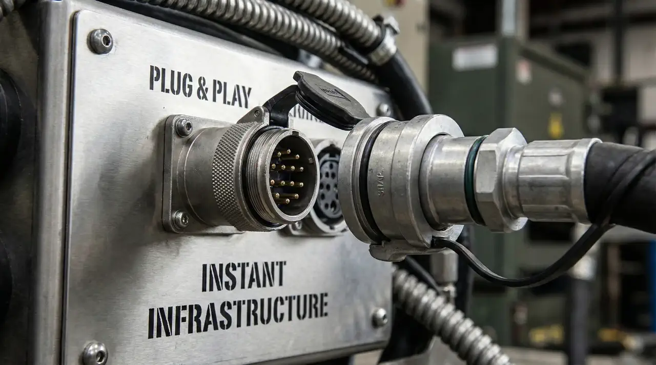 No soldering. No welding. Industrial quick-connectors for water and power.